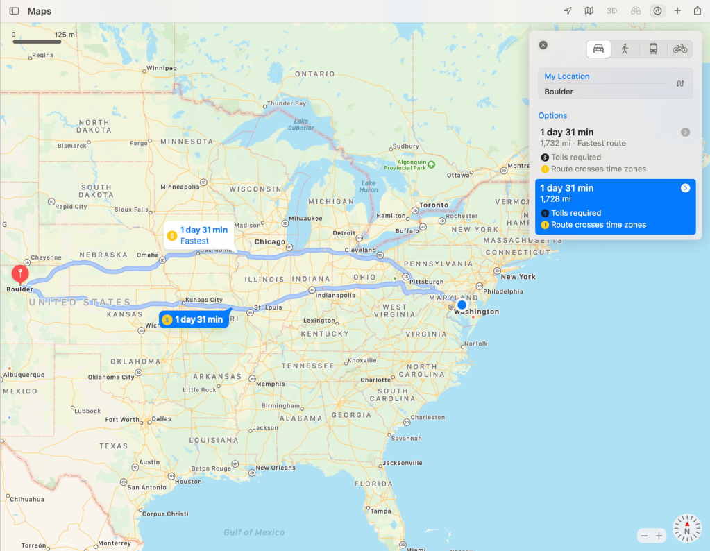 With little time to spare, we had to stick to the interstates. Conveniently, I-70 runs from Baltimore through Denver with just a brief stretch as I-68 (I have no idea why). Practically a straight shot.