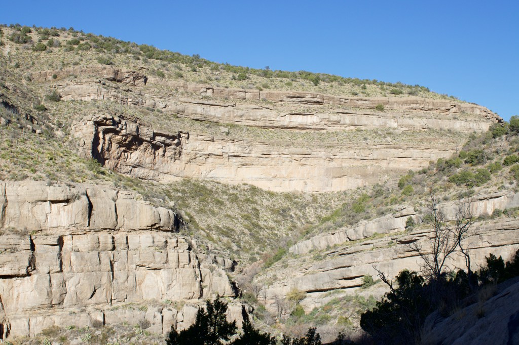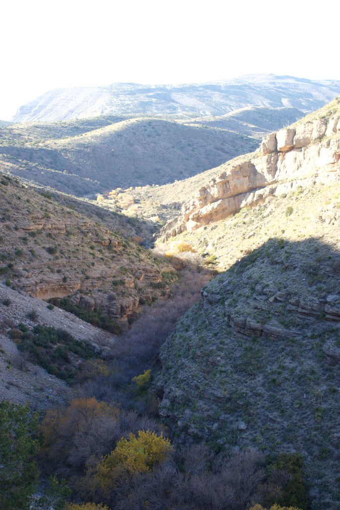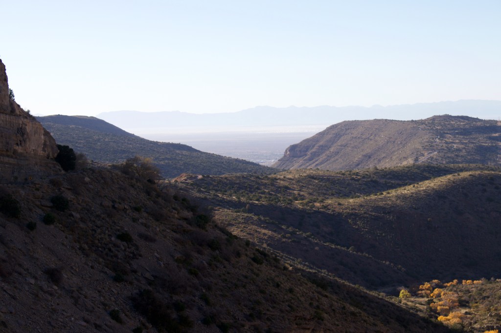 We left White Sands NP at about 4200 feet of altitude, headed back through Alamogordo, driving east. We climbed up Highway 82, the road running from Alamogordo into Texas. At about 6500 feet, there was a scenic overlook that drew us to stop, along with many other people. It was definitely worth it, as the view was amazing. The views looking down to the valley below or looking at the rock cliffs surrounding us competed for our attention and photos.
