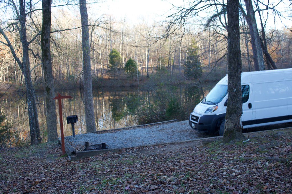 With COVID cases rising but public health directives still somewhat lacking, we pushed east. Texas, to their credit, allowed overnight stops in their highway rest areas, so we took full advantage. Two overnight rest stops saw us through the state and into Oklahoma. We could also overnight in that state, so we did. By this time, we badly needed showers so looked for a state park where we could shut down for a bit and clean up. We settled on Natchez Trace State Park in Tennessee, conveniently just off of I-40 in about the middle of the state. The park surrounds Pin Oak Lake, and our site was right on one of the many little coves of the lake.