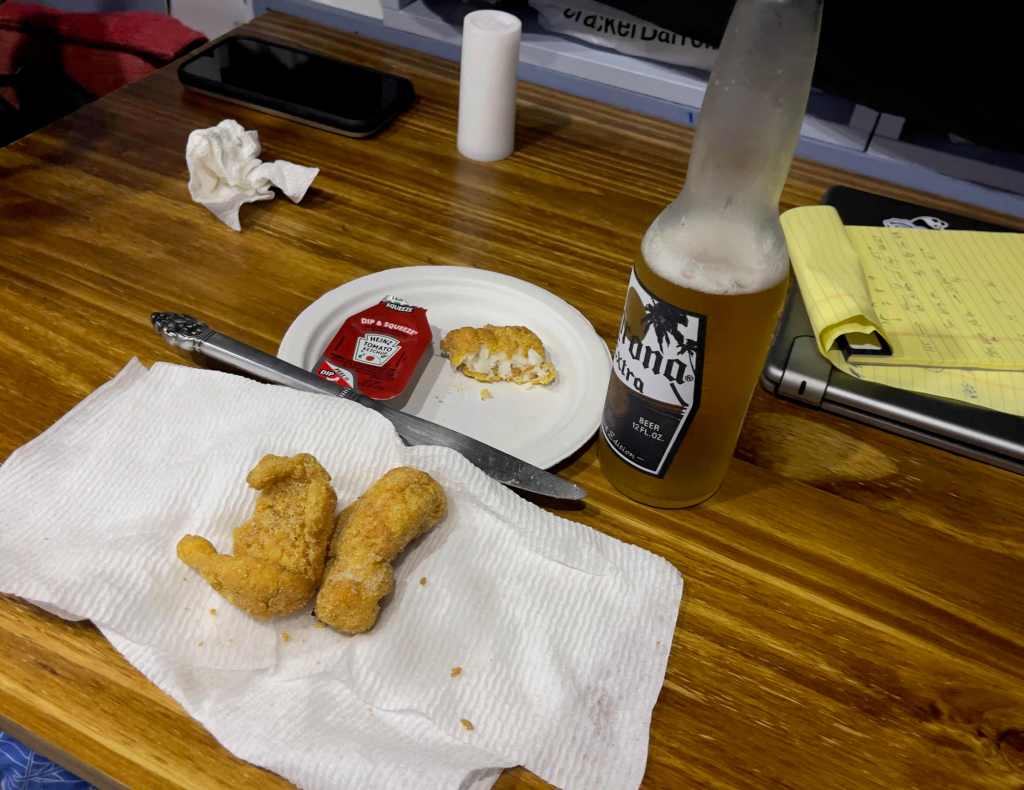 The next morning the neighbors were cleaning the overnight trotline catch, some really nice big catfish. I marveled at them and took a quick picture. We also gave a quick tour of the van and the work done. When we returned from the city that evening, they were cooking up the fish and brought us some to try. It was so good, especially washed down with some beer!