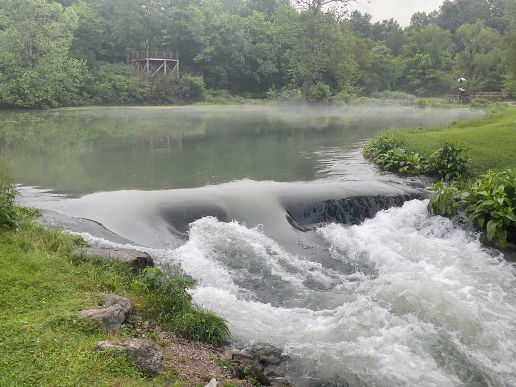 The spring is one of the World’s largest, with more than nine million gallons of water flowing out of it every hour. It forms a ten acre lake that flows into the aptly named Spring River. Back in the day, the flow was used to power a mill and a hydroelectric plant.