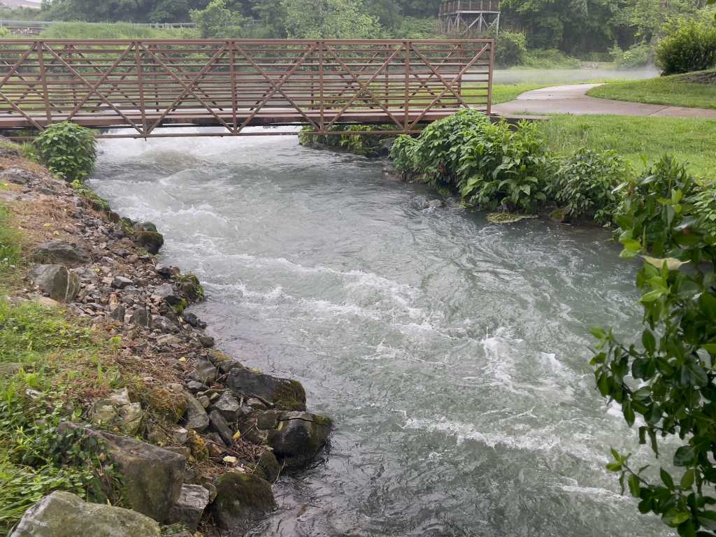 We pulled into the parking area for the park and had the place pretty much to ourselves. The area was very pretty, lots of water, grass, and trees. We waited until dark, and with no knocks on the door to move us along, settled in for a quiet night. The next morning we took a walking tour of the spring and the surrounding park, and it was quite a place.
