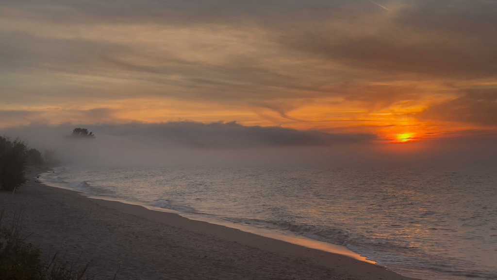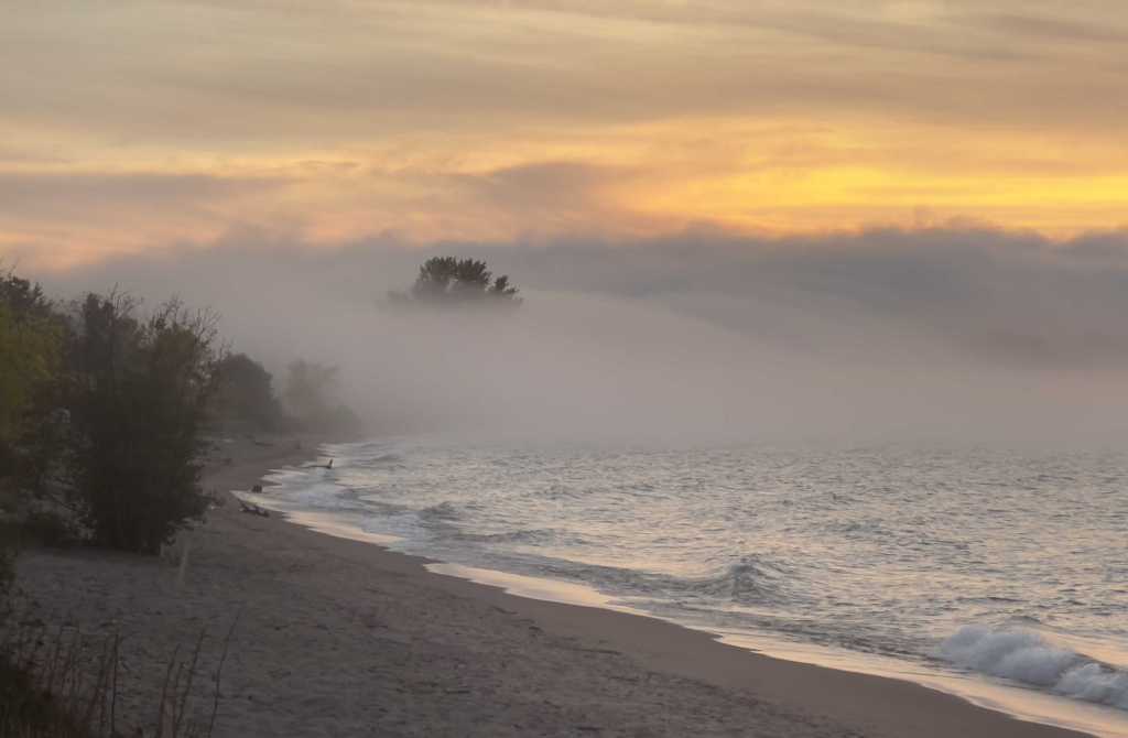 We fell asleep listening to the waves washing up on the shore twenty yards away from us. The next morning was foggy with moisture from the fog on everything. This campsite on the lake was one of our fond memories of the trip. It was a quiet and serene initial stop on our trip along the Great Lakes.