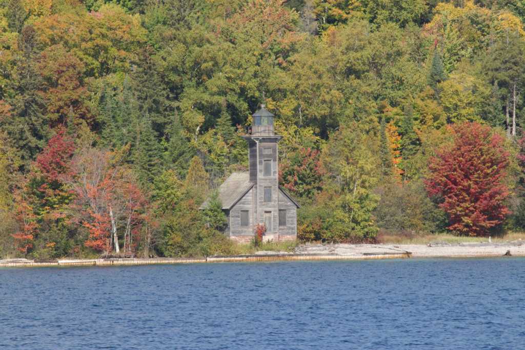 On our way out to Pictured Rocks, we passed through Grand Island Harbor Bay’s East Channel. On the Island’s shore was the East Channel Lighthouse, built to allow the harbor at Munising to be used for refuge if needed. Construction on the lighthouse was finished in 1870 and it was in use until 1913. It is privately owned and viewable only from the water. The wood siding has not be painted or refinished.
