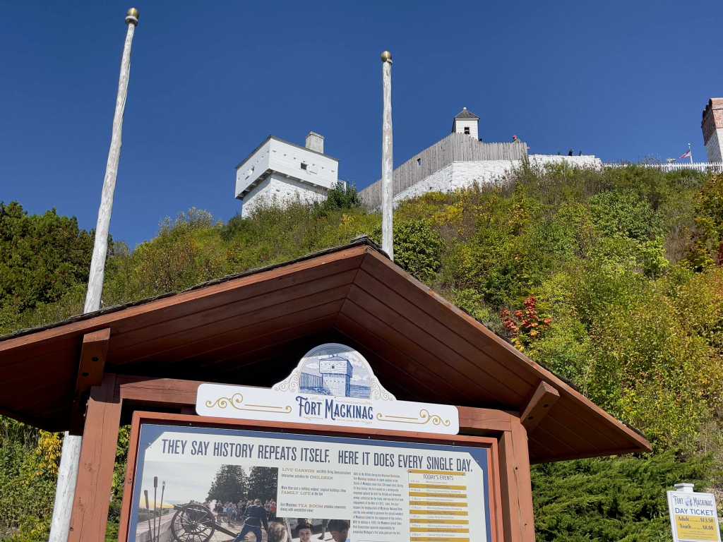 Also perched on the hill over the city and harbor is Fort Mackinac. Fort Mac is a former British and American fort, active from the late 18th century to the late 19th century. The British built it during the American Revolution to try to control the very strategic passage between Lake Michigan and Lake Huron. The location of the fort also enabled control of the lucrative fur trade on the Great Lakes. Even with the outcome of the Revolutionary War, the fort didn’t come into American hands until thirteen years after the end of the war.