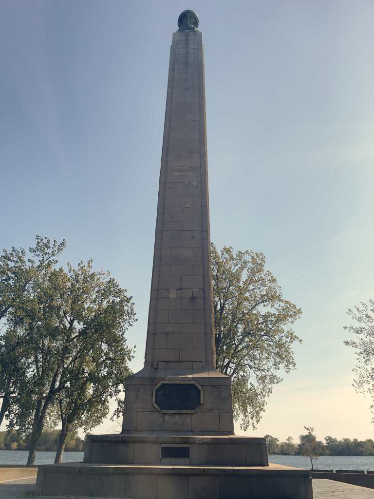 We raced through Cleveland along the lake shore, overnighting at a Cracker Barrel (thank you CB, great food and a great o/n stop!). Lake Erie then took us into Pennsylvania where we stopped at Presque Isle State Park to view the Perry Monument. Named after Commodore Oliver Hazard Perry, the U.S. naval leader during the War of 1812. He used Presque Isle Bay as an easily defended harbor from which to attack and defeat the British squadron in the Battle of Lake Erie. His famous quote to General William Henry Harrison after the victory: “We have met the enemy, and they are ours.”