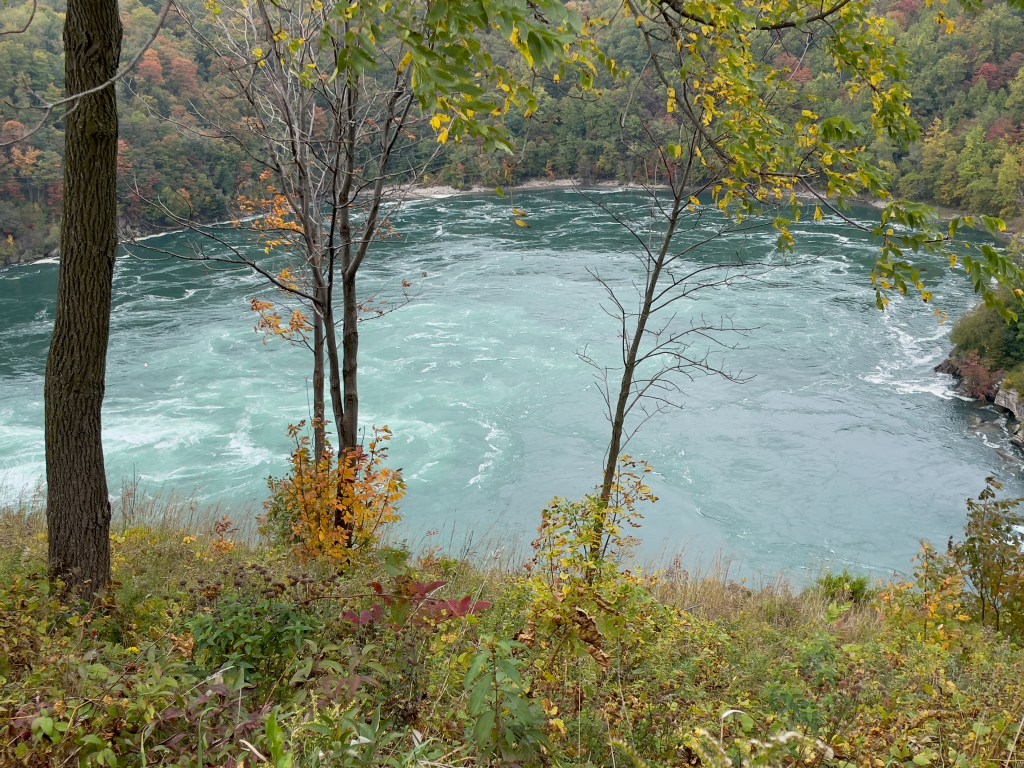 After touring the fort, wandering through the buildings and checking out all the cannons, we headed south down the Niagara Scenic Parkway to Niagara Falls. We walked along the Niagara River through Whirlpool State Park. The park is just downstream from Niagara Falls and the gorge compresses the river creating a class V whitewater stretch with amazing turbulence. The dramatic near 90 degree change in the river’s flow creates the Niagara Whirlpool.