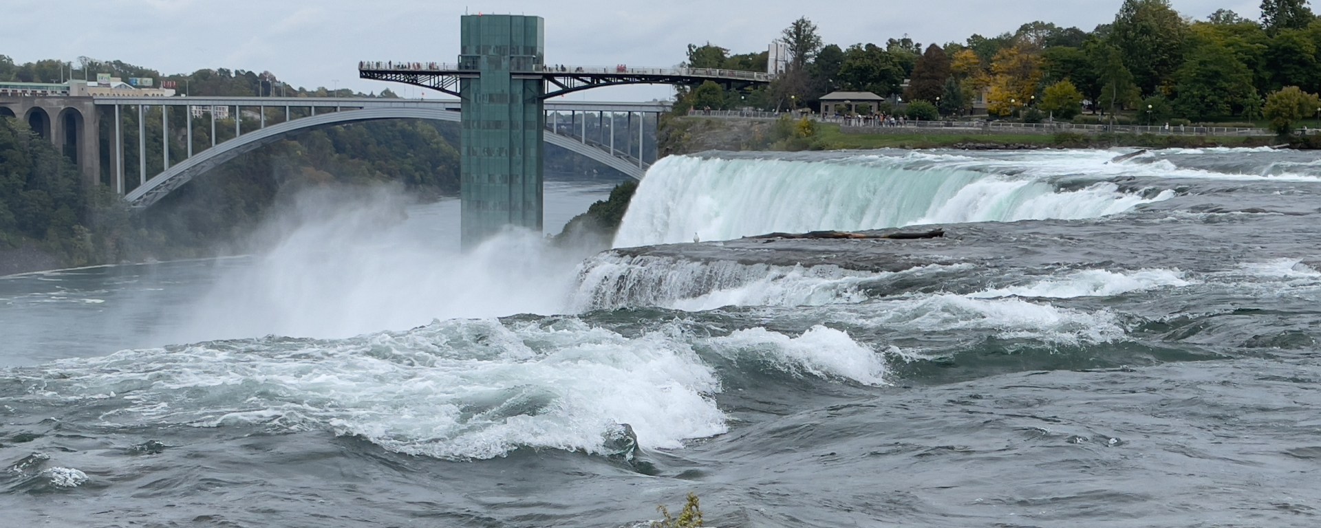 There are actually three waterfalls, Bridal Veil, Horseshoe, and American Falls. Water flows from four of the Great Lakes: Lake Erie, Lake Huron, Lake Michigan, and Lake Superior. It is well worth the trip to take it all in.